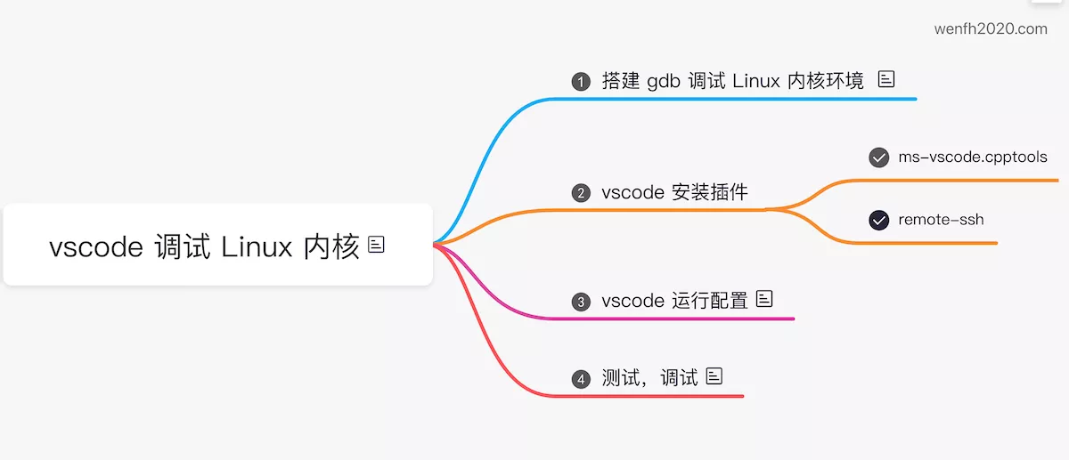 要搭建 vscode + gdb 调试 Linux 内核环境,首选要搭建:gdb 调试 Linux 内核源码(视频),然后再配置 vscode 进行测试调试。