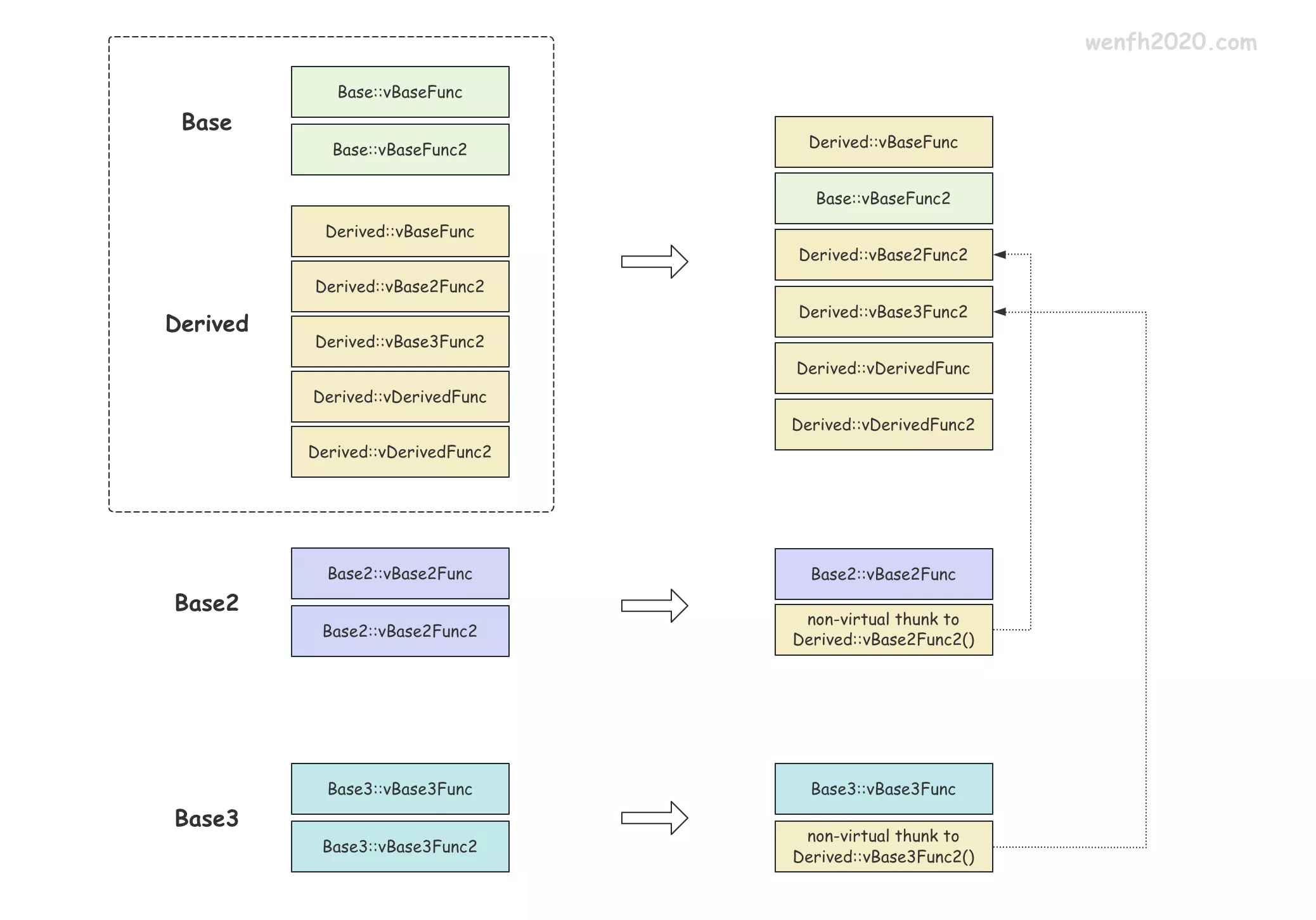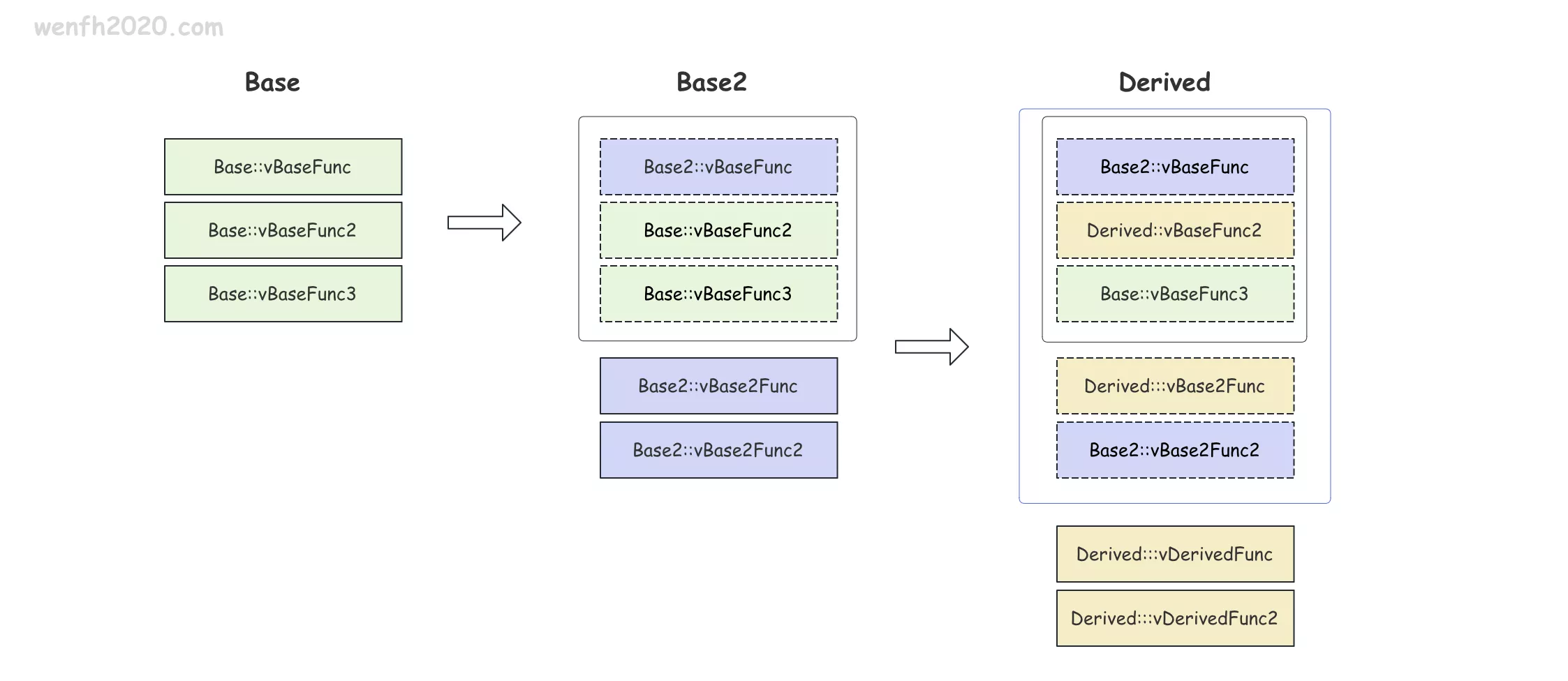 virtual void vBase2Func() { std::cout << "Derived::vBase2Func" << std::endl; }