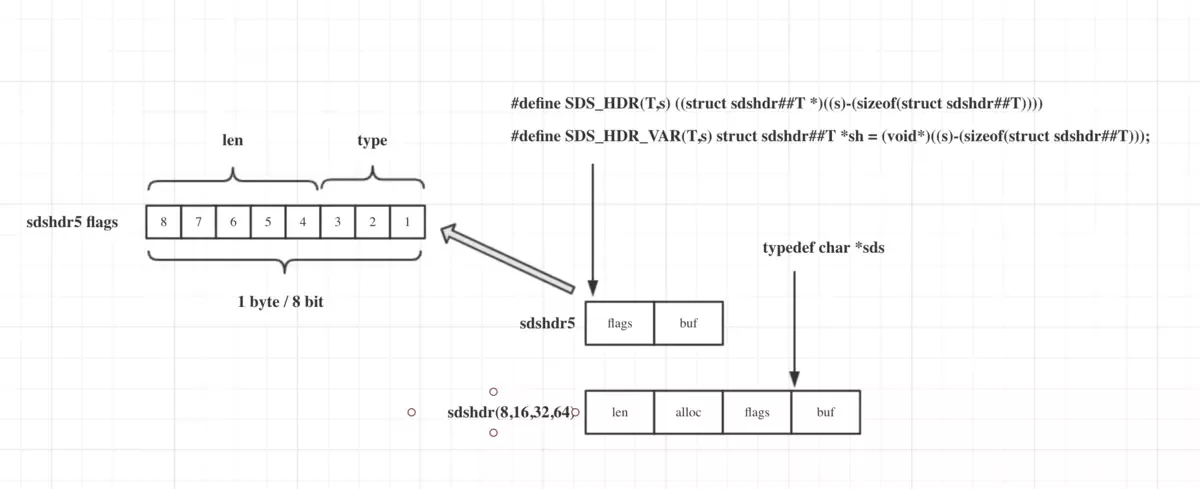 #define SDS_HDR_VAR(T,s) struct sdshdr##T *sh = (void*)((s)-(sizeof(struct sdshdr##T)));