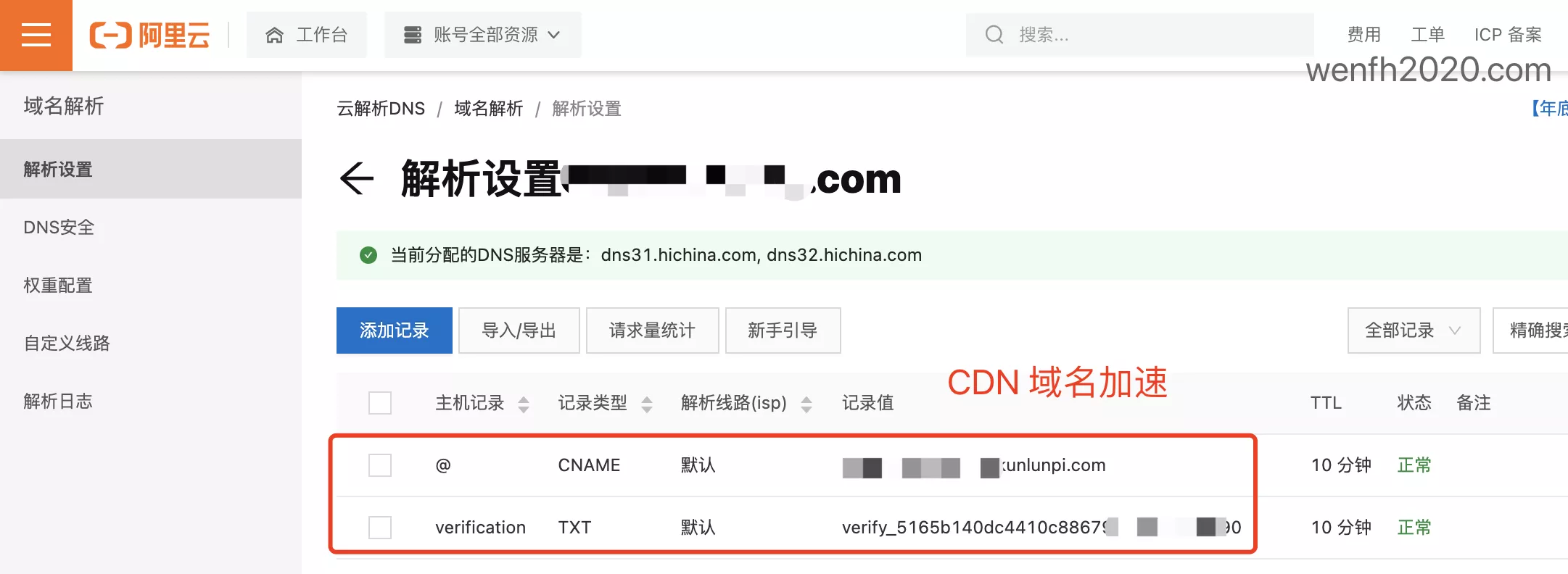 - 添加 DNS 解析 CDN 加速的相关记录。