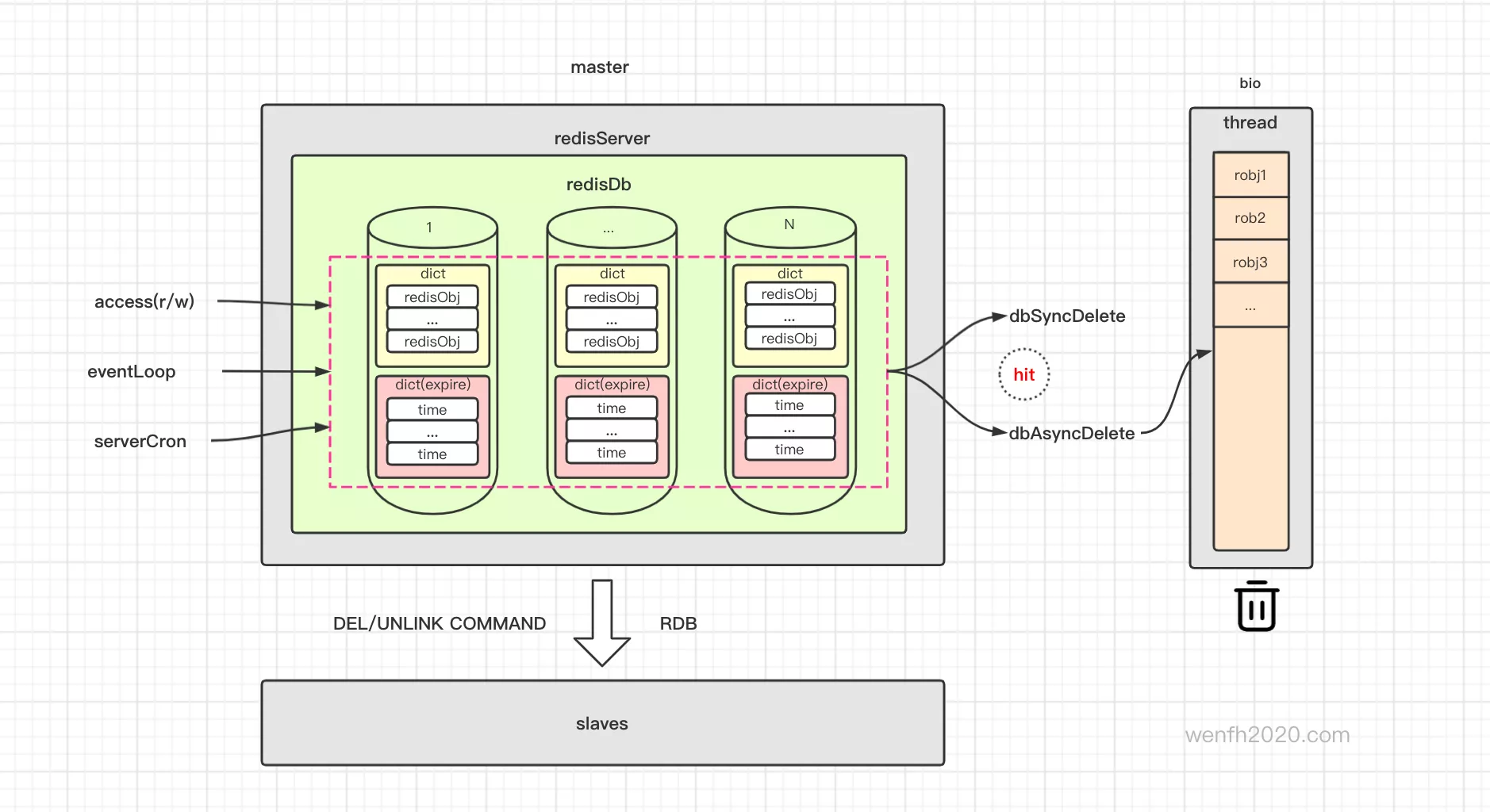 unlink 逻辑删除 key,数据放在 bio 线程异步删除。