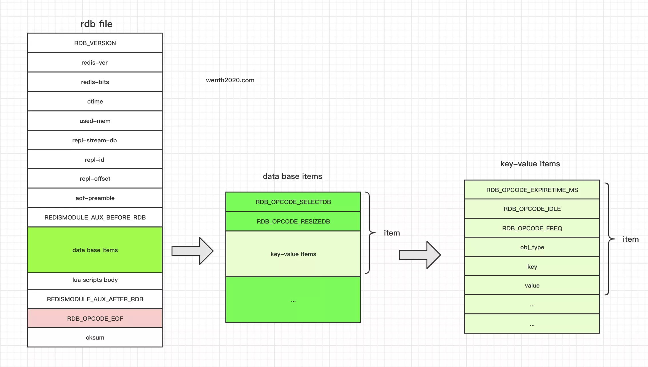 粗略将 rdb 文件的结构元素添加到图表,可以看作是“伪代码”吧,有些元素是建立在一定条件下才会添加进去。