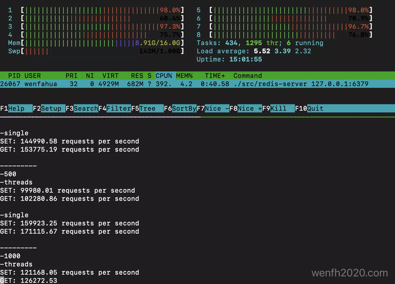 命令逻辑已整理成脚本,放到 github,顺手录制了测试视频:压力测试 redis 多线程处理网络 I/O。
