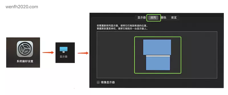| 屏幕位置 | 根据需要排列显示器位置:鼠标拖动显示器到合适位置。![]() |