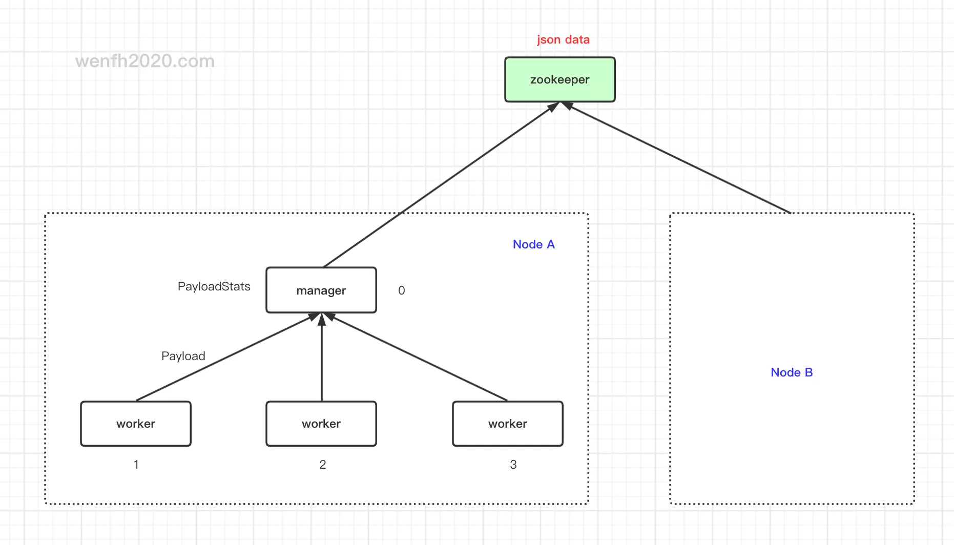- 父进程定时将统计信息转化为 json 数据,更新到 zookeeper 对应节点。