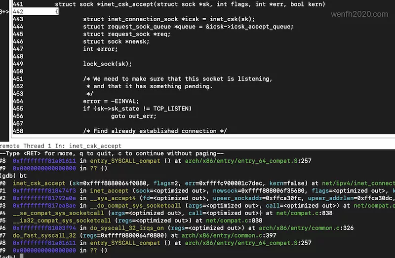 视频连接:gdb 调试 Linux 内核网络源码。