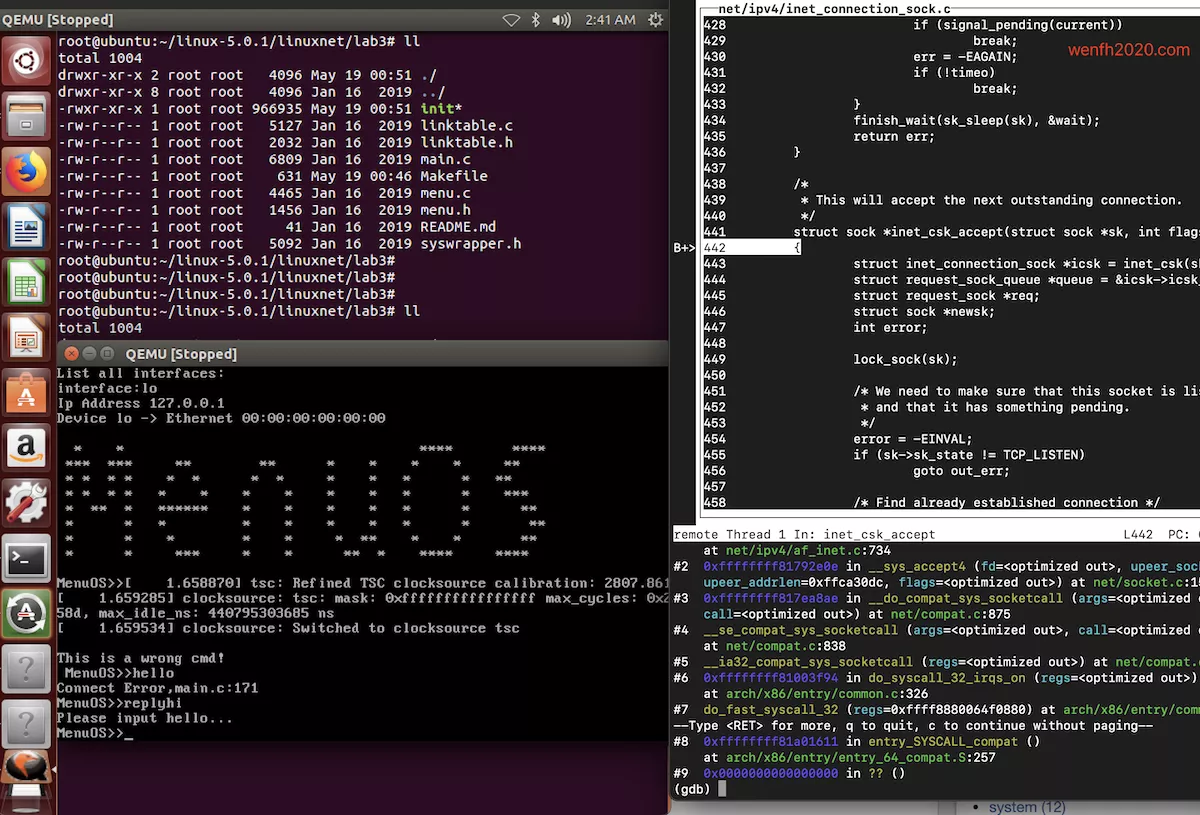 - 目标:gdb 调试 Linux 内核网络部分源码。
