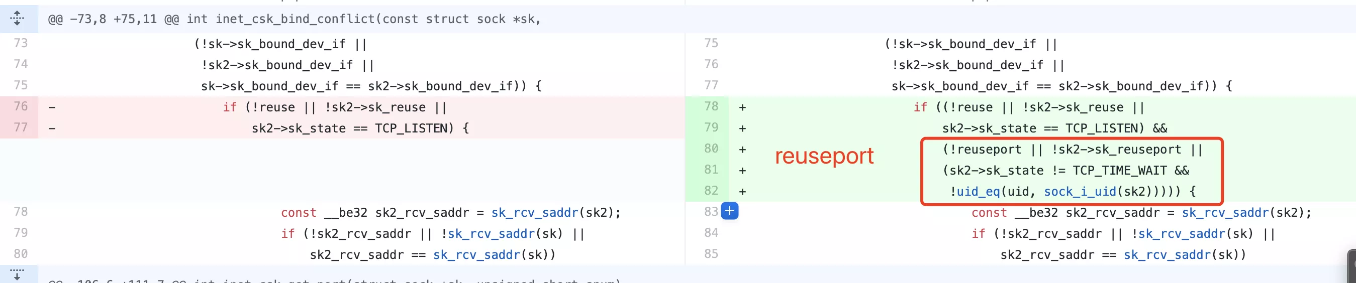 这个判断端口冲突的逻辑,有点烧脑,主要检查两个选项场景: SO_REUSEADDR 和 SO_REUSEPORT。