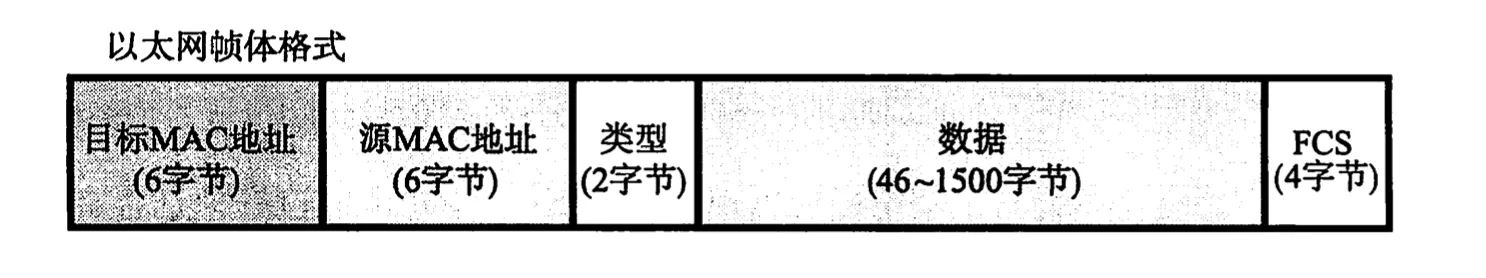 因为在以太网上传输 IP 数据报时,以太网设备并不能识别(IPv4) 32 位 IP 地址,而是以 48 位以太网地址传输以太网数据包的。以太网帧本体的前端是以太网的首部,它总共占 14 个字节。分别是 6 个字节的目标 MAC 地址,6 个字节的源 MAC 地址以及 2 个字节的上层协议类型。紧随帧头后面的是数据。一个数据帧所能容纳的最大数据范围是 46 ~ 1500 个字节。帧尾是一个叫做 FCS(Frame Check Sequence,帧检验序列)的 4 个字节。