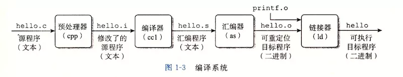 图片来源:《深入理解计算机系统》- 第一章 计算机系统漫游 - 1.2 程序被其它程序翻译成不同的个数。