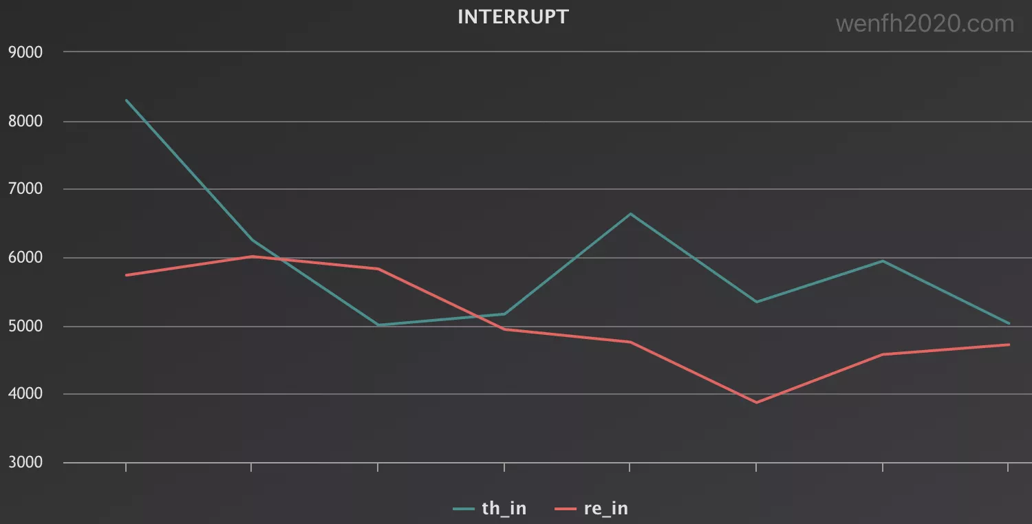 - 对比两个场景的中断数据。(th_in:惊群,re_in:非惊群。)