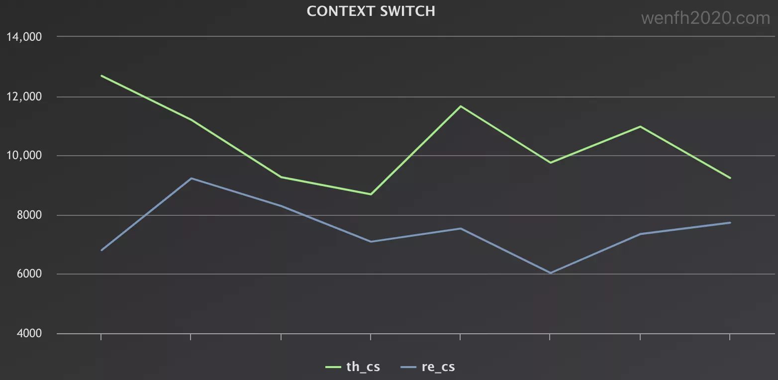 - 对比两个场景的上下文切换数据。(th_cs:惊群,re_cs:非惊群。)