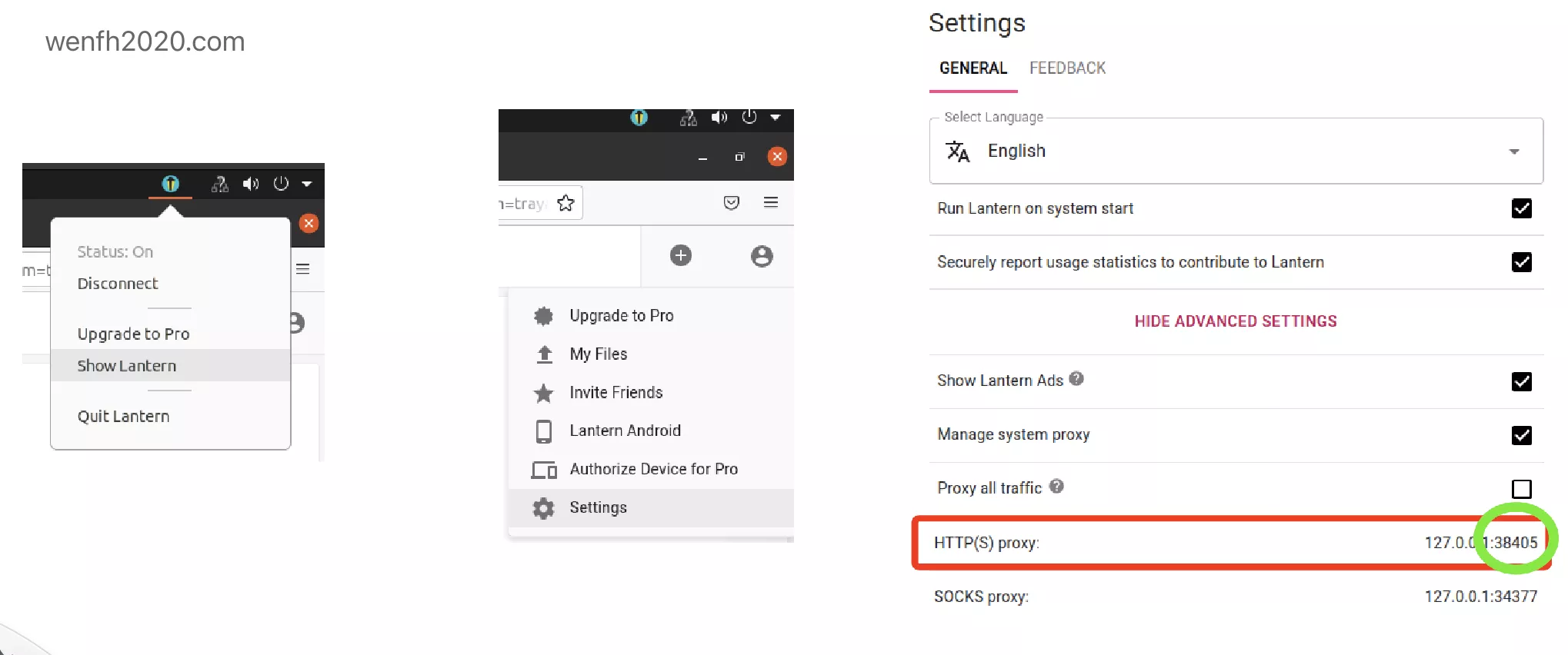 ShowLantern –> Settings –> ADVANCED SETTINGS –> HTTP(S)proxy