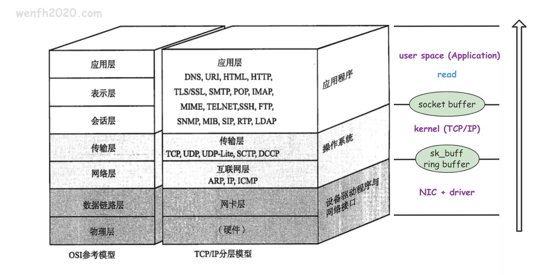 - 网卡驱动读取到 skb 包后,需要将该包传到网络层处理。在这过程中,需要通过 GRO (Generic receive offload) 接口:napi_gro_receive 进行处理,将小包合并成大包,然后通过 __netif_receive_skb 将 skb 包交给 TCP/IP 协议逐层处理,最后将 skb 包追加到 socket.sock.sk_receive_queue 队列,等待应用处理;如果 read / epoll_wait 阻塞等待读取数据,那么唤醒进程/线程。