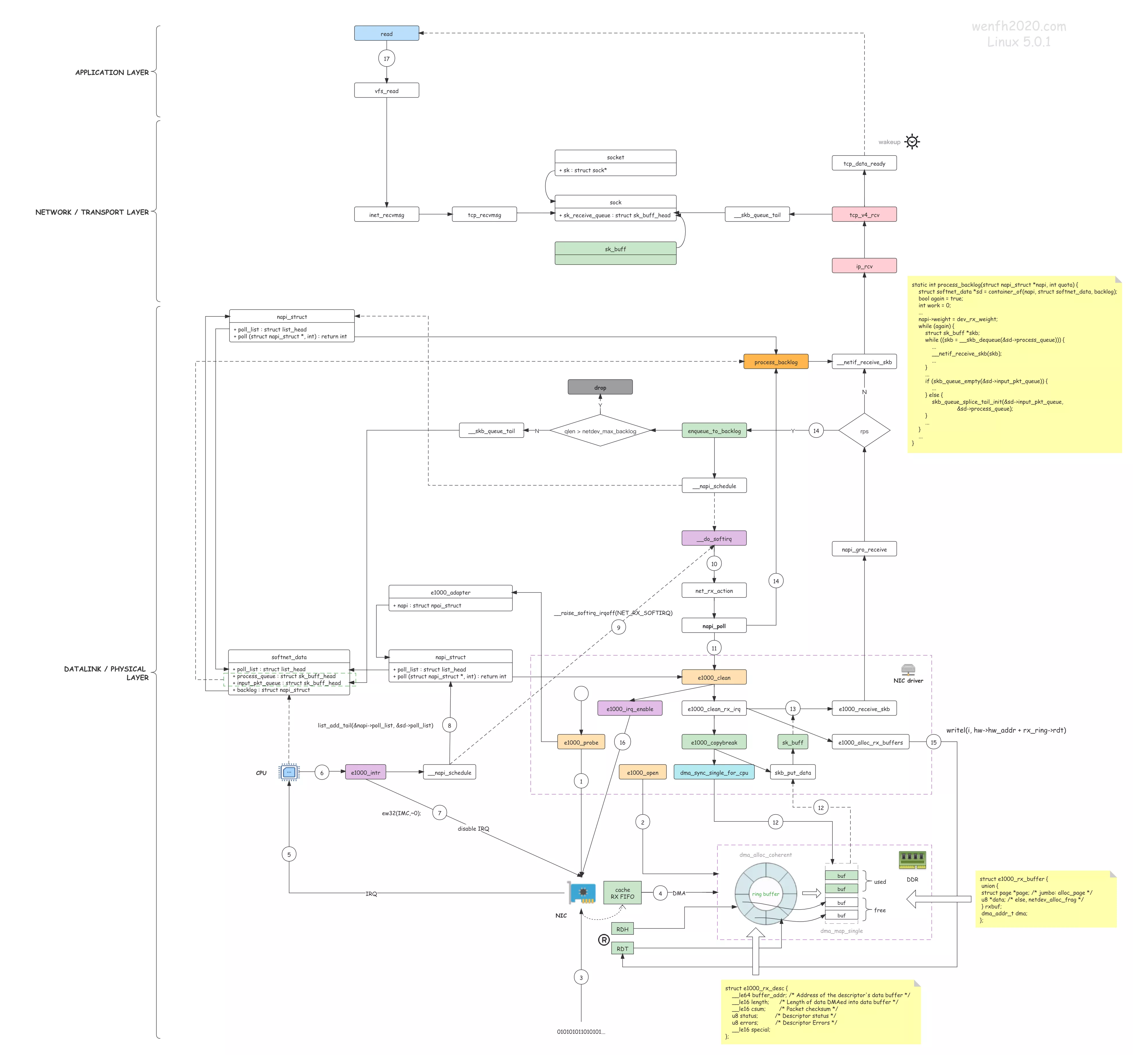 走读 Linux(5.0.1)源码,理解 TCP 网络数据接收和读取工作流程(NAPI)。