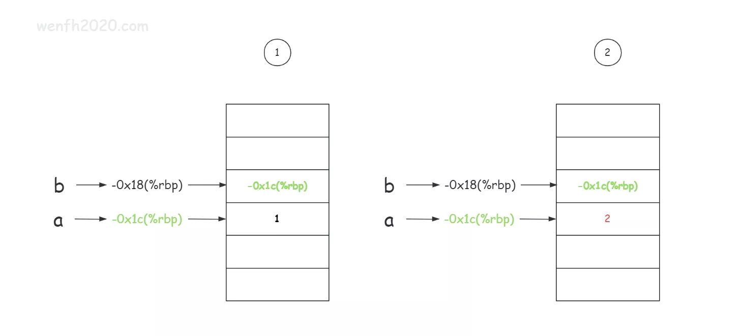 # b 变量地址空间保存了 a 变量的地址。