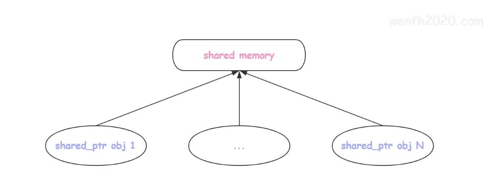 元素对象 A,可以在 std::shared_ptr 内部进行构造,可以实现更多的优化,例如:std::shared_ptr 内部创建了一块连续的内存空间,在这块内存上对