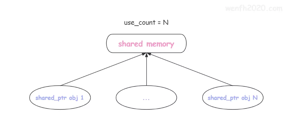 - 当一个 shared_ptr 被销毁或者指向另一个对象,原来的对象的引用计数就会减少。