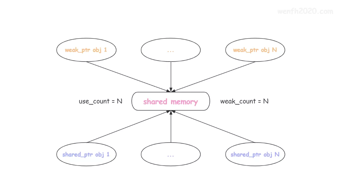 std::weak_ptr 的内部成员结构与 std::shared_ptr 有惊人相似,原理大同小异。