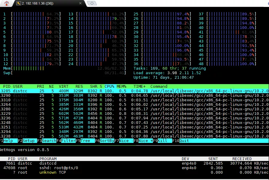 - 服务端 - 远程机器 - 192.168.1.36 - 48 核(逻辑核心)